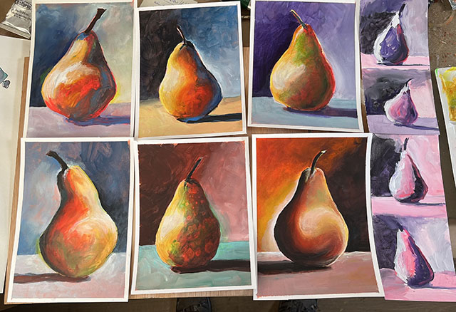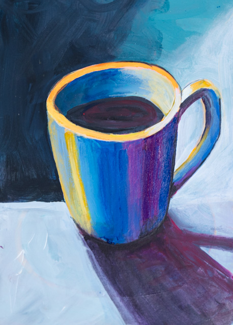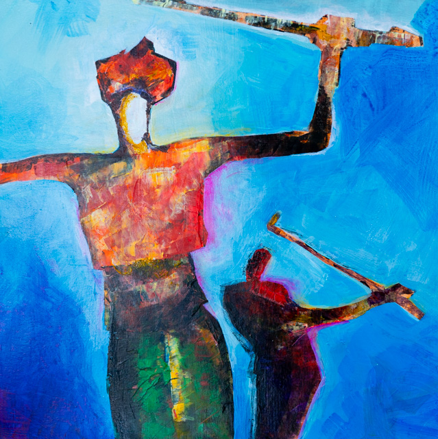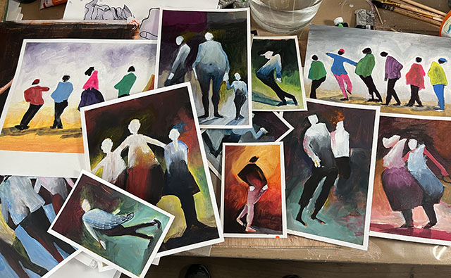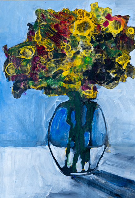 Ik besloot helemaal opnieuw te beginnen. Loslaten was een geweldige ontdekkingsreis. Je kunt op deze pagina's een complete verandering van stijl en methode zien t.o.v. mijn voorgaande werk. Snel schilderen, vol overgave en met een 'tetrade' aan kleuren voor mijn palet. Het begint met schilderen op papier in plaats van op doek. Vaak maak ik meerdere exemplaren van hetzelfde schilderij tegelijk. Snel schilderen met acrylverf op goedkoop papier heeft me de vrijheid gegeven om te experimenteren. Ik hoef niet zo zuinig te zijn of bang om het verknoeien. Bij het maken van meerdere exemplaren van hetzelfde hoeft er maar één goed te zijn. Ik kan loslaten en ontspannen. Ik besteed meer tijd aan experimenteren. Door met dit nieuwe project te beginnen, heb ik in slechts een paar weken meer geleerd dan in jaren. Het is leuker. Ik dacht dat ik het voorlopig een 'Dynamic Painting' zou noemen.